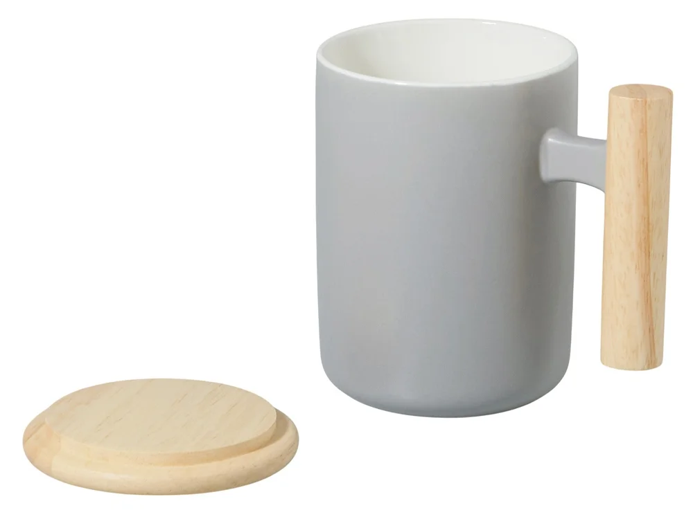- Кружка с ручкой и крышкой из каучукового дерева Jeny